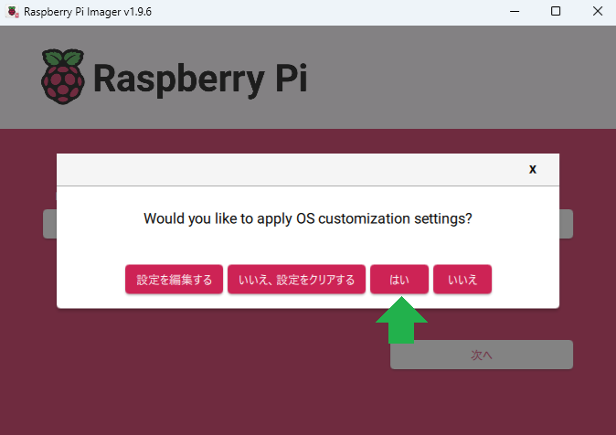 先ほどの設定を使うか聞かれるので「はい」を選択します。